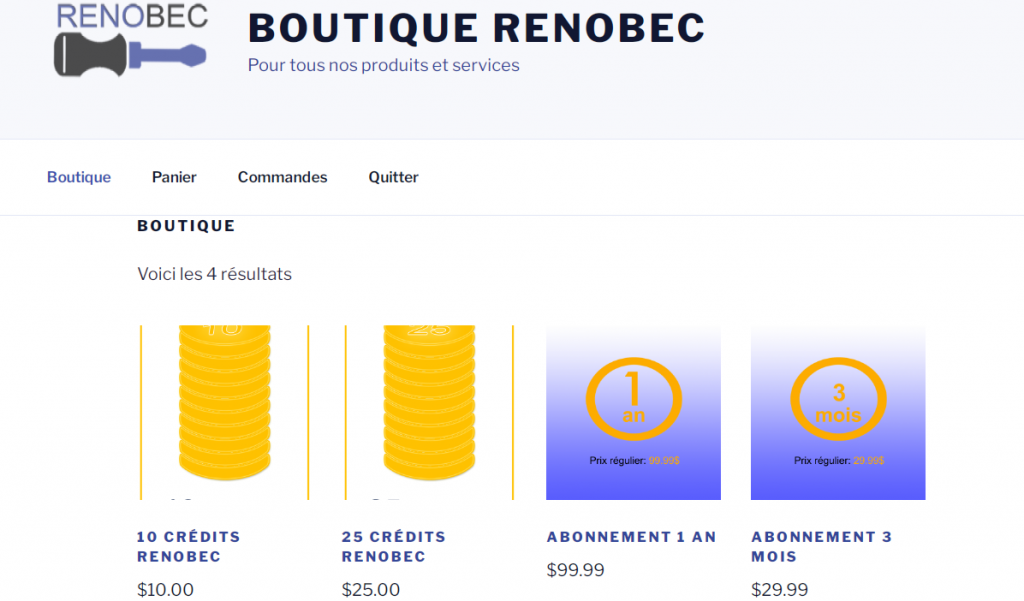 Rénobec met à disposition une boutique en ligne accessible au https://renobec.ca/boutique